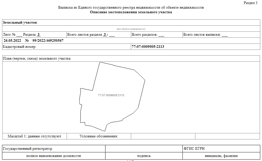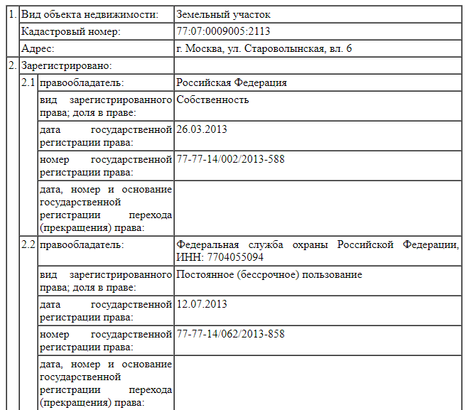 Выписка о переходе прав на земельный участок выглядит так:
