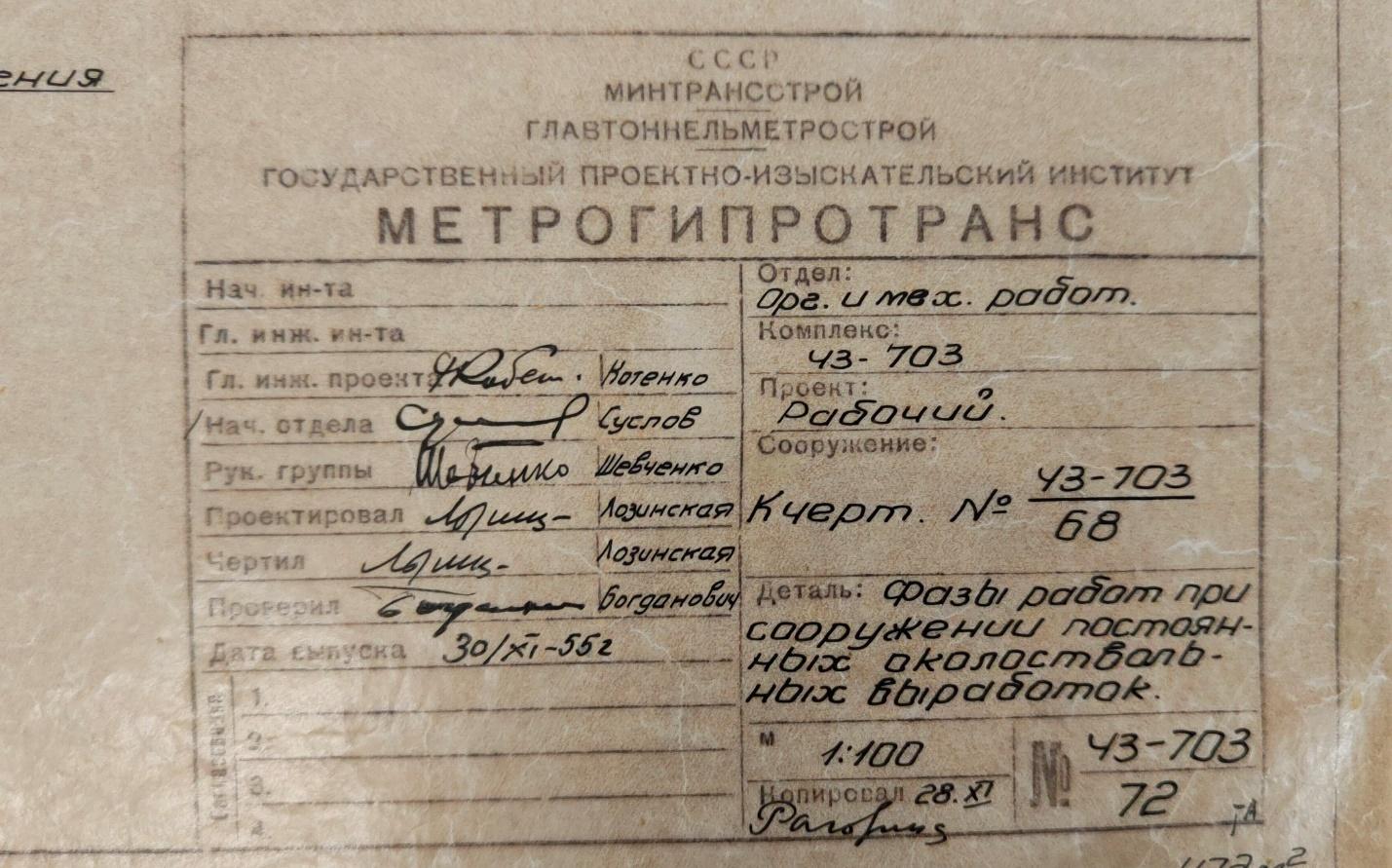 Государственных подземных сооружений, построенных структурами Метростроя, с различным статусом и состоянием в Москве не так уж и много, все они имеют отношение к институту Метропроект (после 1950-х годов – Метрогипротранс). И все объекты глубокой фортификации такого рода имеют номера с литерами «ЧЗ». Это – шифр, расшифровка которого доподлинно неизвестна. Фигурируют версии «чужой заказ», «чрезвычайный заказ», «чрезвычайное задание» и т.д. По Юркову – все-таки «чужой заказ». Выше – пример такого ЧЗ – Объект 703. Ниже – чертеж его фрагмента.