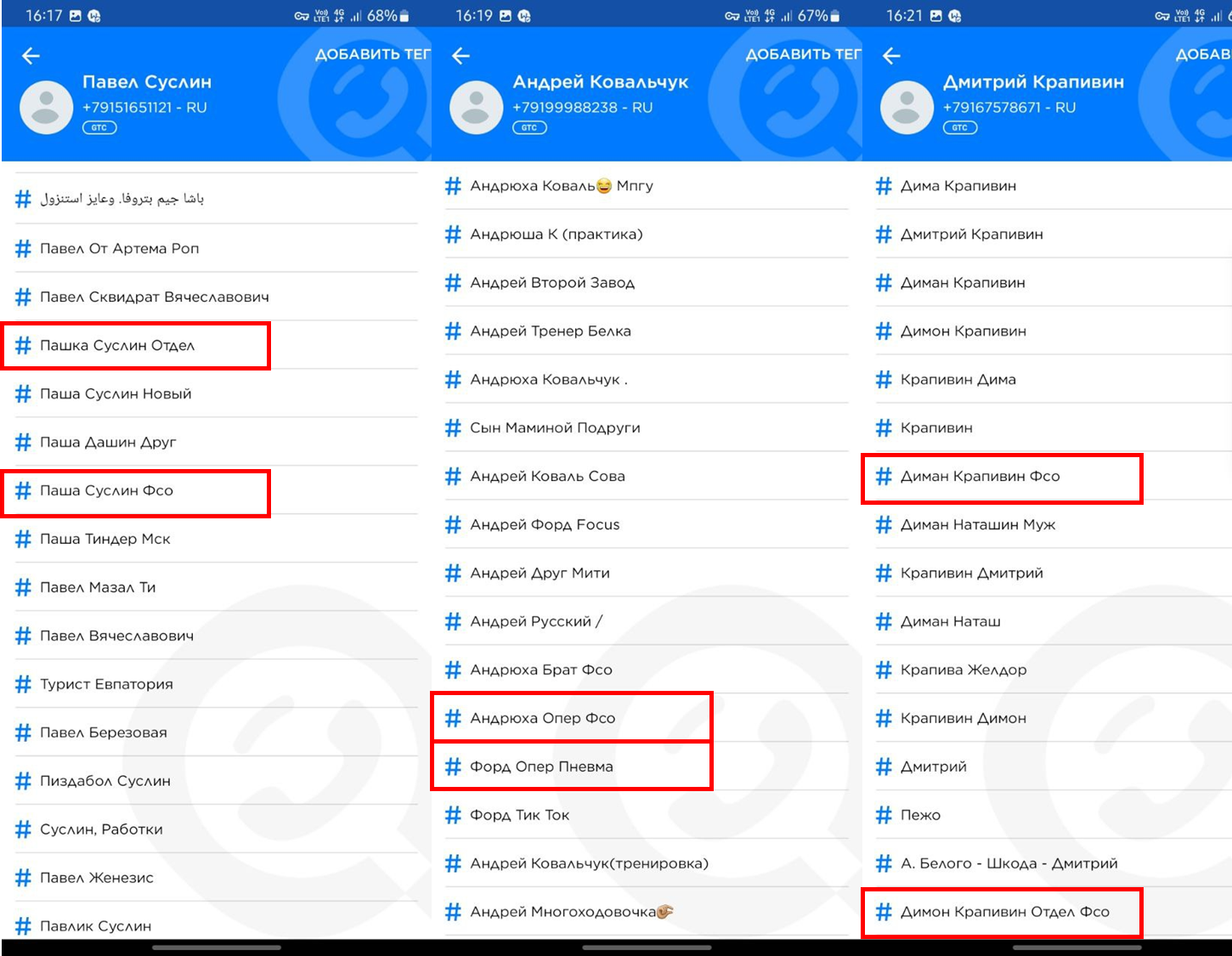 Большинство лиц, заказавших еду, являются сотрудниками ФСО. Такой вывод можно сделать, исходя из результатов поиска приложения «ГетКонтакт». Пример: