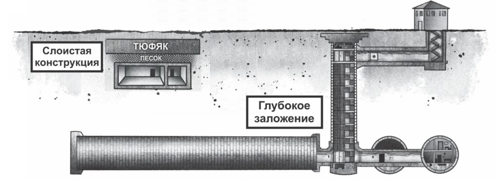 Глубокому заложению предпочли слоистую конструкцию мелкого заложения из-за особенностей почв. Это также объясняет, почему в тот период на дачу из Кремля или иных частей Москвы не провели тоннель. Позже в район Кунцево метро и необходимые коммуникации все-таки провели, но не к даче и обычное, а не «Метро-2».