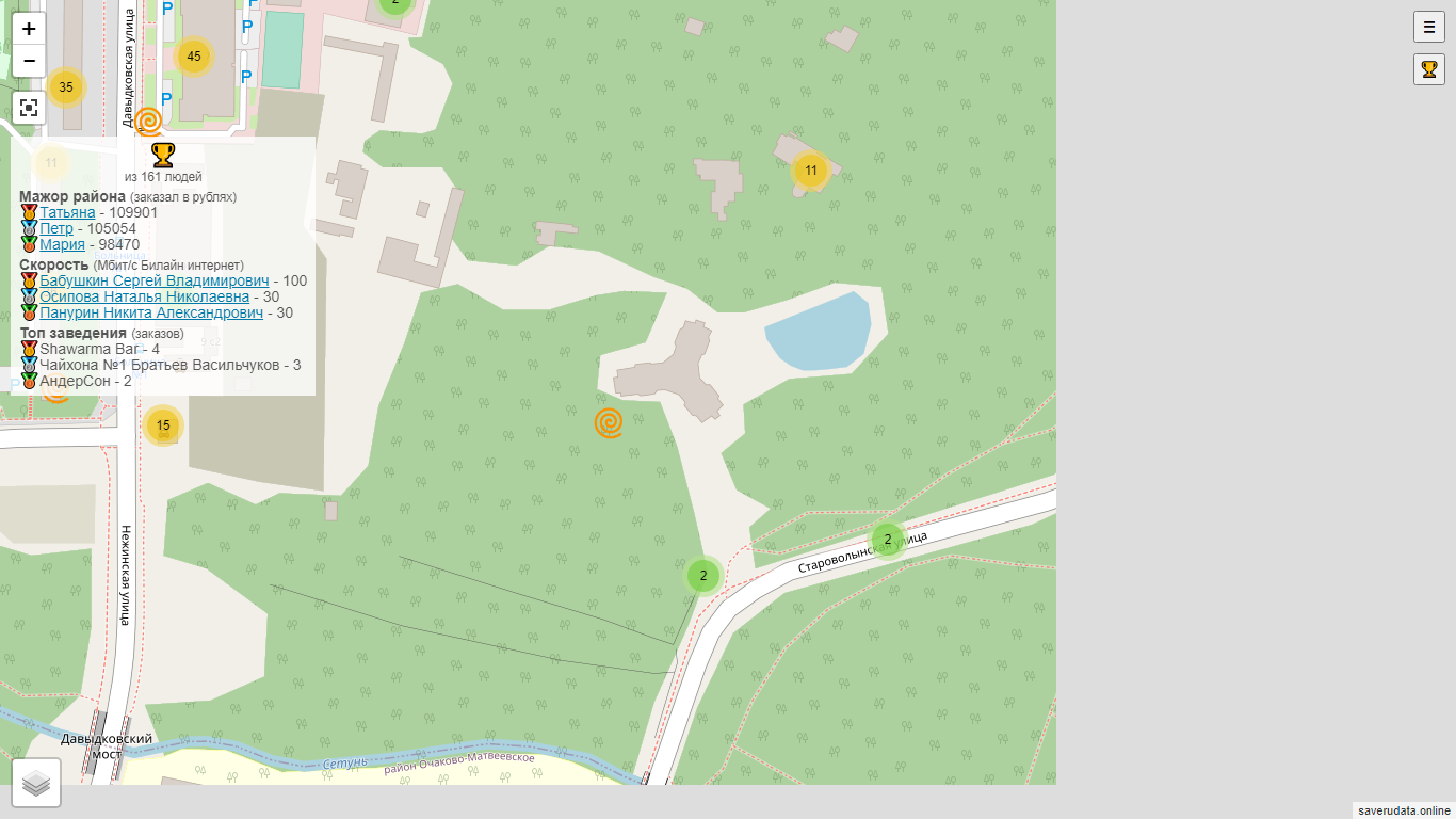 Еду заказывали 16 человек. Три года назад было возможно перейти по ссылке и кликнуть на метки – откроется вкладка с информацией о заказчике еды, с телефоном, именем, а если повезет – с социальными сетями. Информацию «Сота» разрабатывала довольно давно.