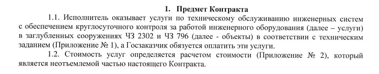 Приложение не прикреплено, однако есть акт выполненных работ. Из него мы узнаем, что Объект ЧЗ 2302 расположен по адресу г. Москва, Большой Кисельный переулок, дом 4, строение 1., а также – что произведено обслуживание электрических систем, включая системы связи, обработки информации в подземном бункере – каналы, рубильники, системы изоляции, системы охлаждения, температурные анализаторы. Объект, условно отнесенный нами к Метро-2, является действующим.