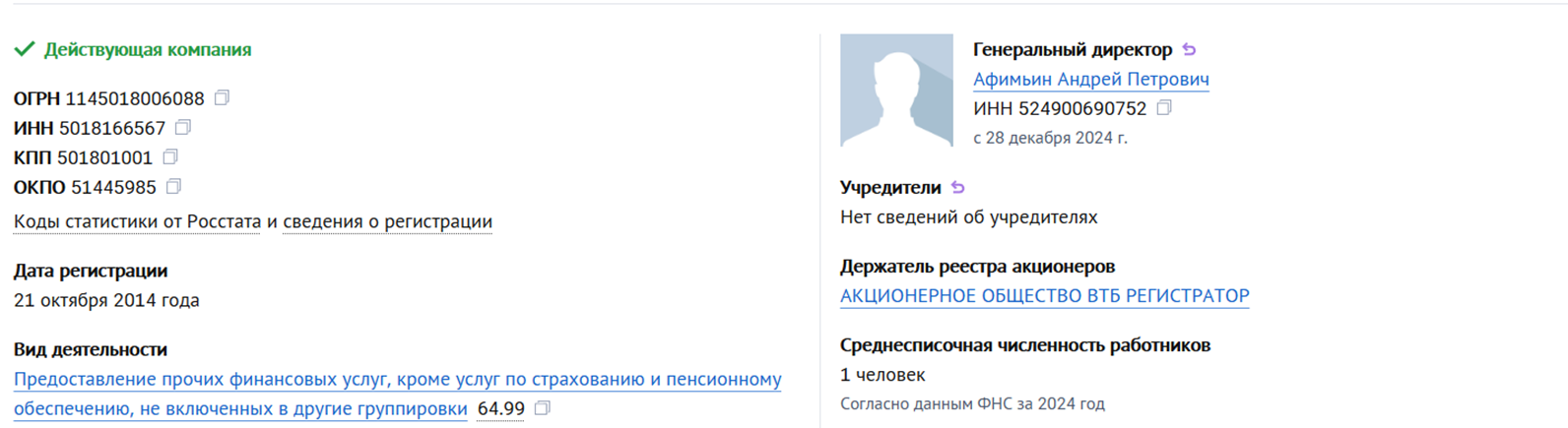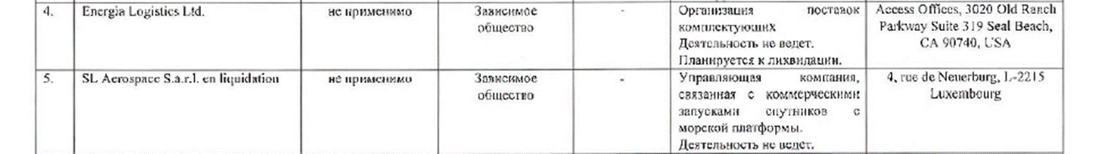 Отдельно следует упомянуть АО «Инвестиционная компания Раздвитие» с 10% акций «Энергии». В компании работает один человек, а учредителем является, собственно ПАО «РКК «Энергия»