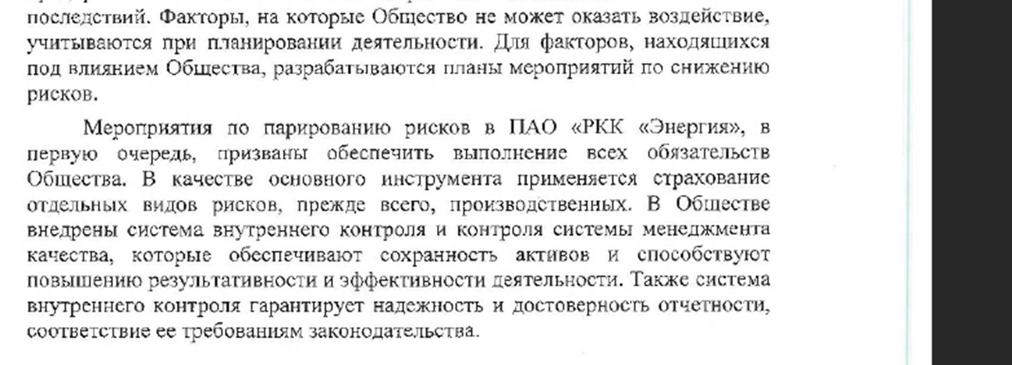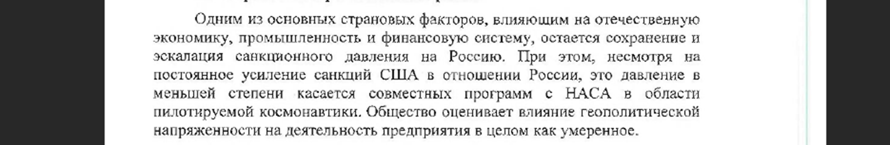 Отдельно скрыто указание, что санкции западных стран, включая США, не затрагивают совместные программы с НАСА. Более того, «Энергия» рассматривает влияние напряженности в мире, как умеренное.