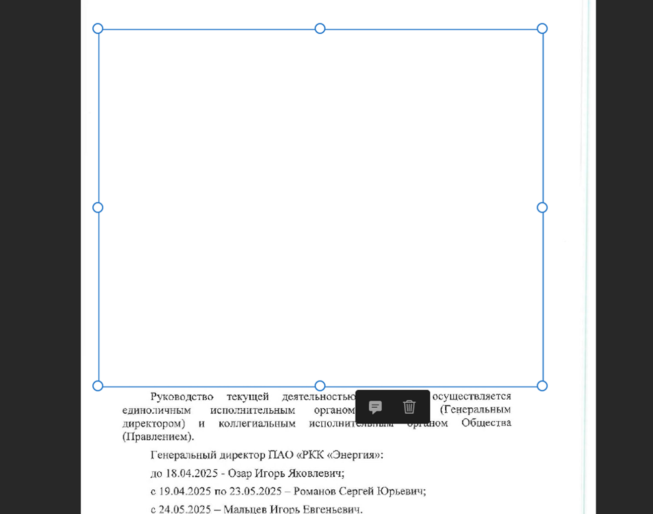 Внимание было уделено руководящему составу. Как указывают коллеги, чувствительную информацию подрядчик Роскосмоса скрыл в буквальном смысле – заслонил текст белыми квадратами, а сам pdf-файл оставили открытым для редактирования.