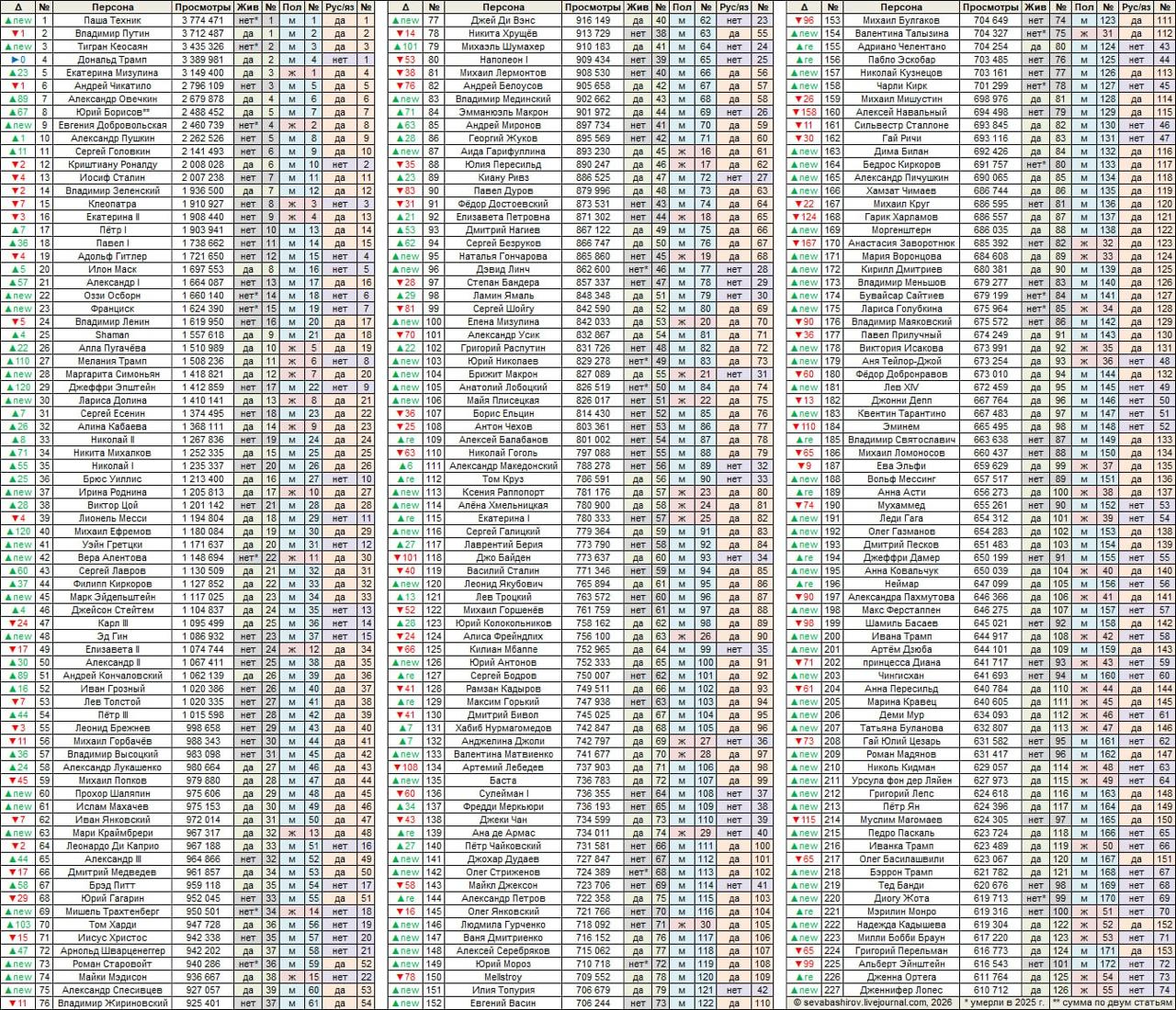 Единственным оппозиционером, попавшим в топ-200 статей биографических русской «Википедии», которыми интересовались россияне в 2025 году, оказался Алексей Навальный