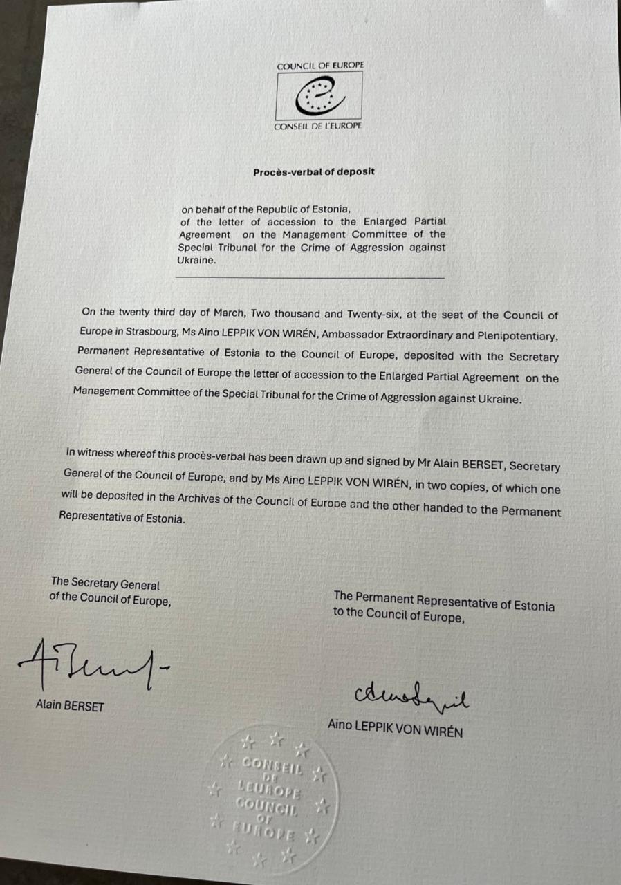 Подписание документа подтверждает участие страны в создании международного механизма для расследования и привлечения к ответственности за развязывание войны.