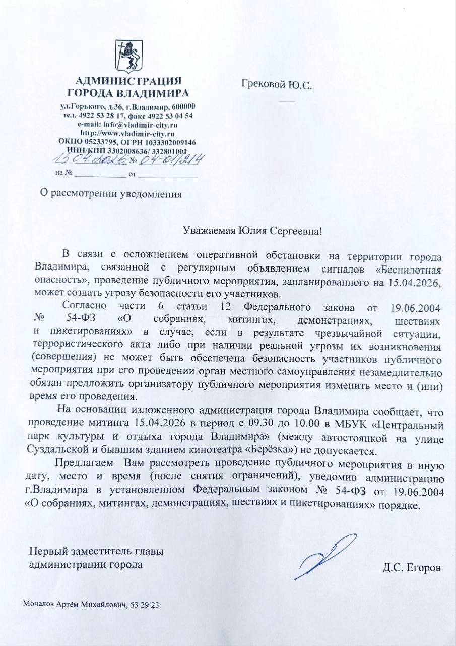 Аналогичным образом власти города уже отказывали в его проведении накануне 1 апреля – и также под предлогом угрозы беспилотников.